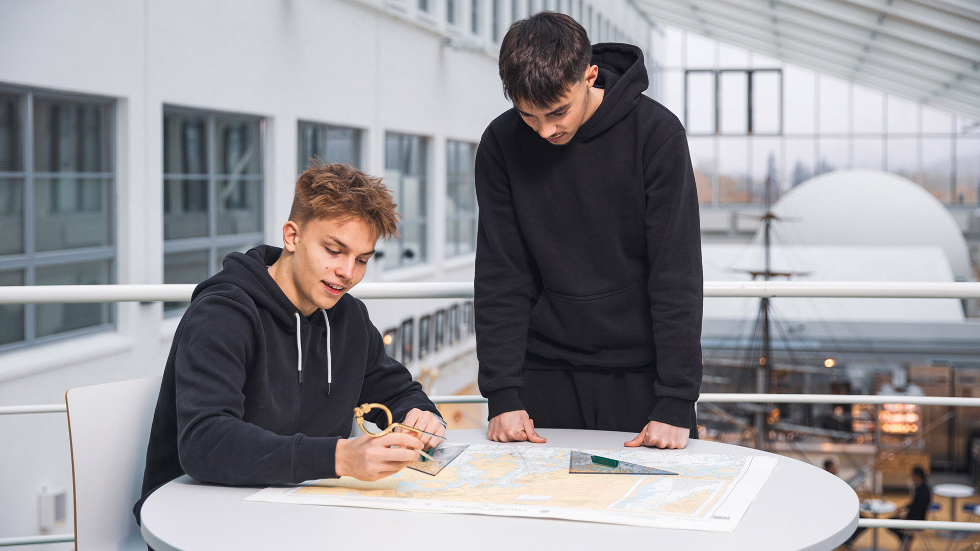 Studierna växlar mellan teoretiska studier, fartygssimulatorövningar och inlärning i arbete ombord på fartyg i trafik.